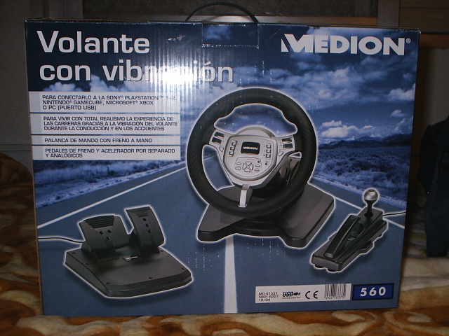 Volante marca Medion por 40 € en Aldi, trae el volante, palanca de cambios y freno de mano y freno y acelerador, además es compatible con PS2, Pc y Game Cube. Os adjunto una foto del mío