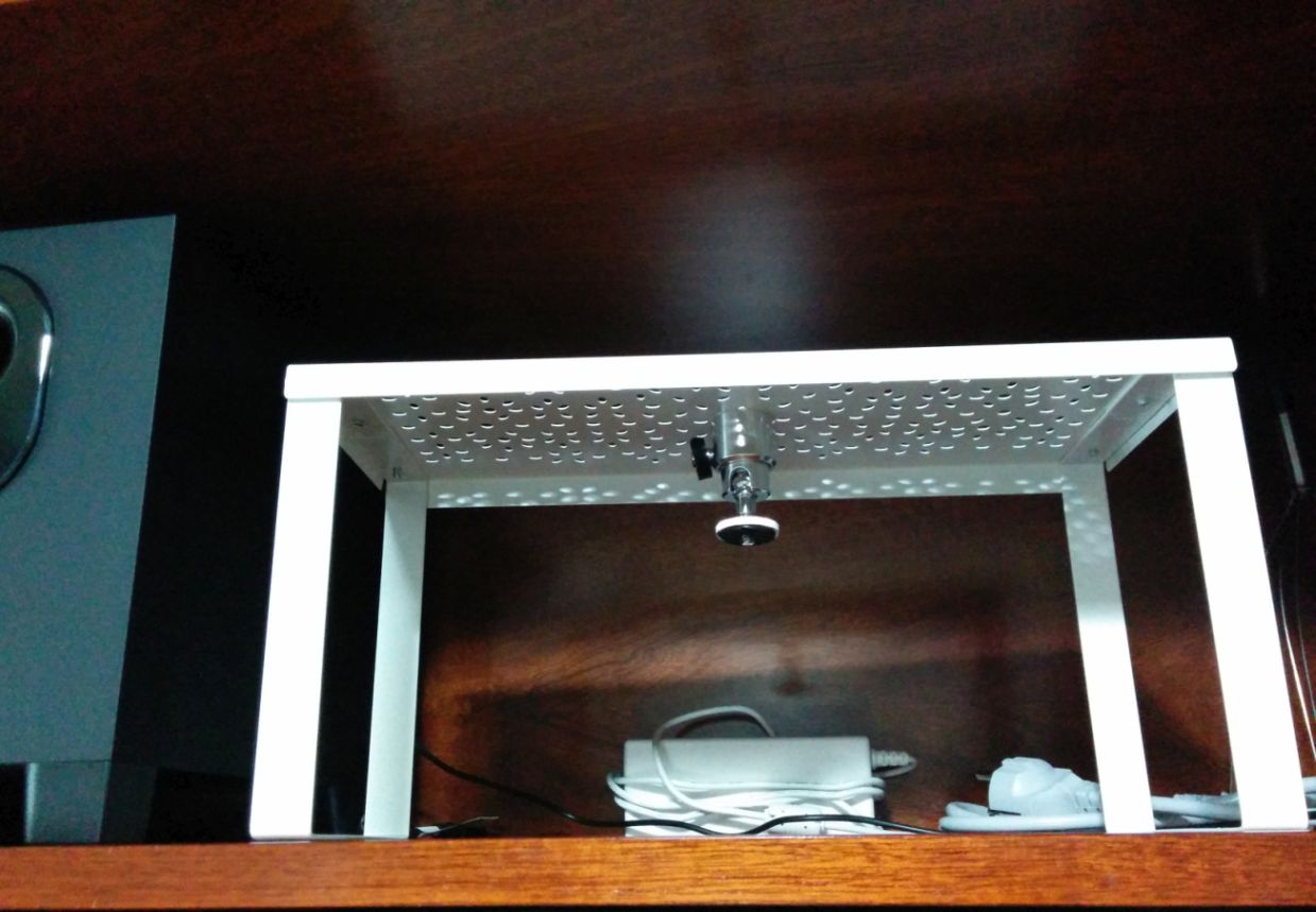 Al final me he buscado un apaño para ponerlo boca abajo y ganar un poco de altura. Compré un minitrípode y lo desmonté para quedarme con la rótula como hiciste tú, pero luego lo monté sobre un pequeño estante del ikea y no queda mal si no te fijas en el color :)