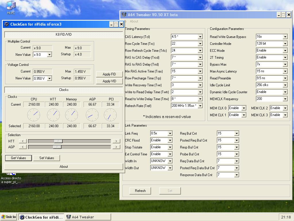 pero si tienes el vcore a 1.45v y pones 240x9 , eso son 2160 Mhz , a ver si va a ser el micro el q te esta petando , q podria ser , prueba a poner un multi mas bajo , el 8x por ejemplo , dale hasta 1.55 vcore y a la RAM 2.8v sin miedo , tb asegurate de estar bajando el LDT a 4x