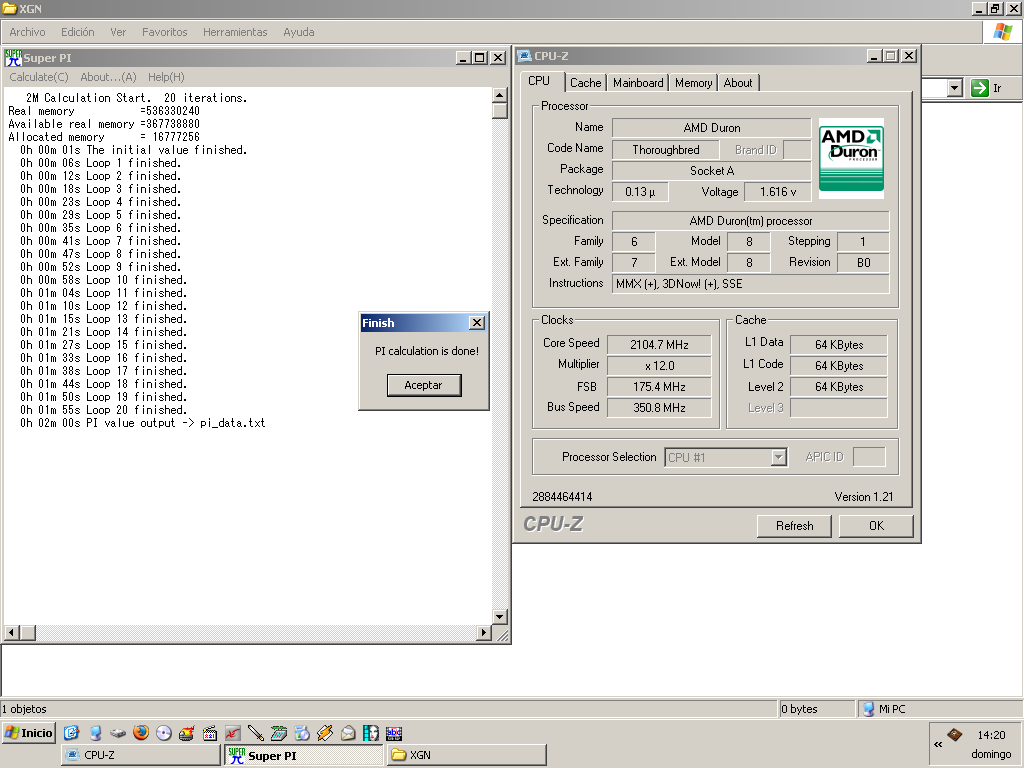 Bueno, lo dicho, con mala ostia y algo de mañan, le he ganado este asalto a la Epox, bajo 4 segundos y subo 100Mhz.