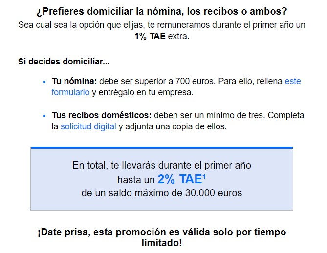 Perséfone escribió:Don Giovanni escribió:Gracias a ambos. He estado mirando los de Renault y te dan 1,40% y tu dinero 2 años retenido. Y el de Bankinter es un porcentaje más elevado pero un máximo de 5000€.