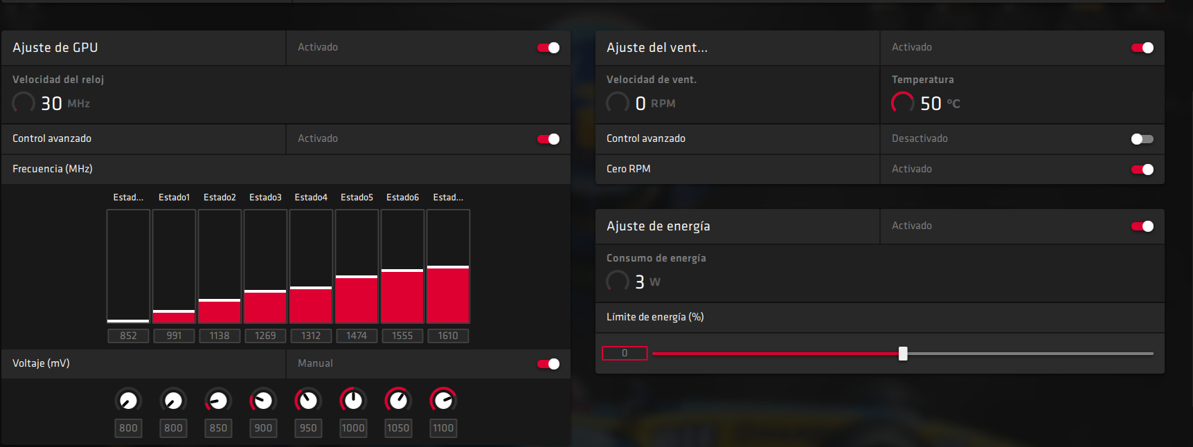 Que parámetros de la gráfica me recomendaríais tocar de mi Vega 56, para que rinda bien y consuma lo mínimo posible?? Tengo una fuente de 750 bastante normalita y de vez en cuando, sufro reinicios mientras juego. Ahora no me viene bien dejarme dinero en otra fuente mejor.