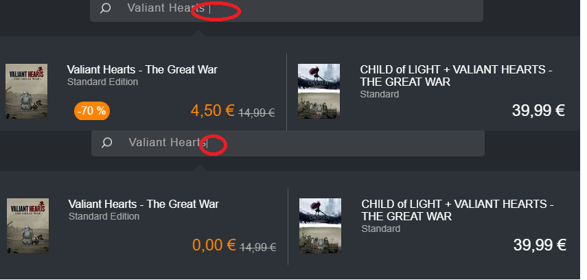 Tiene un error si, si haces la busqueda como tiene precio de 0€ si le añades un espacio al final del nombre el precio de 4.50€