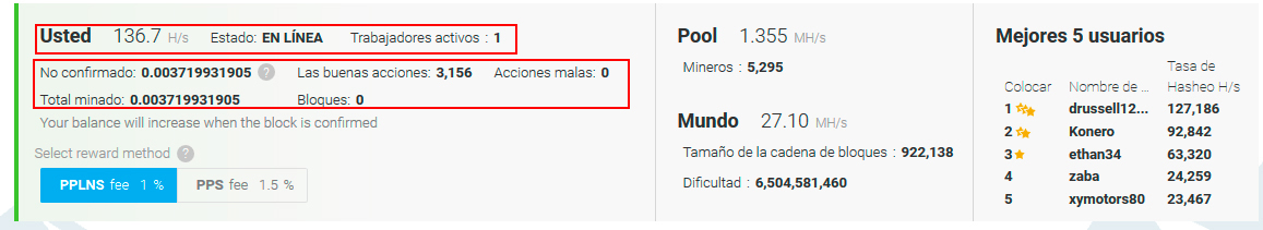 Pero el total minado si me sube desde que empece.