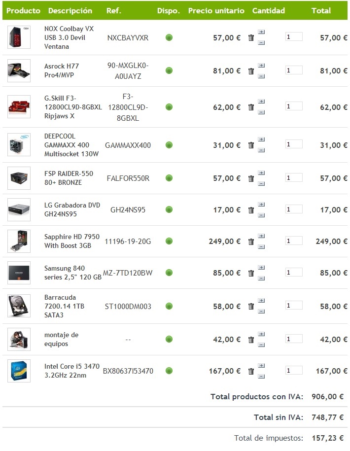 En las piezas necesarias he puesto la configuración que tenía pensada mirando en PCComponentes.