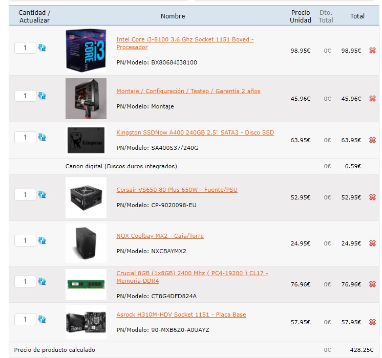 Te adjunto presupuesto, pero las placas baratas de intel no hay stock todavia, aunque ya aparecen :