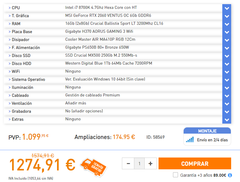 -Procesador: Intel Core i5 6600 3,3Ghz