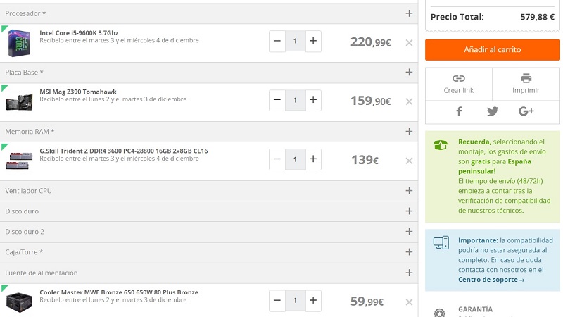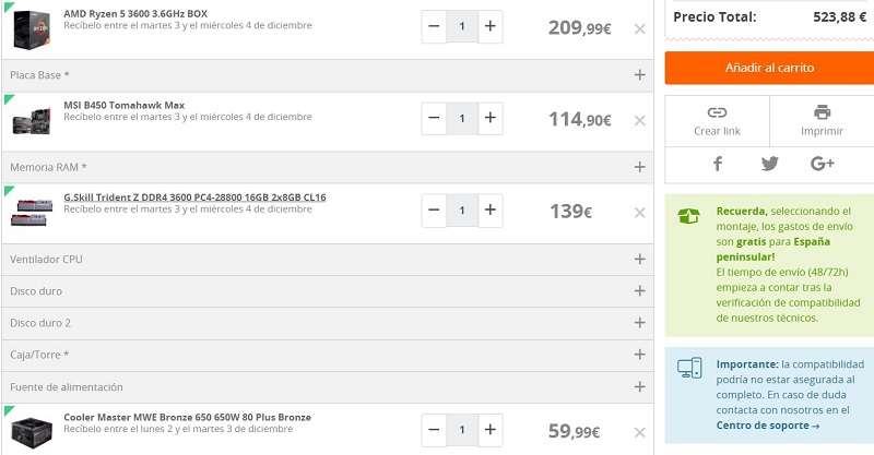 Alex_gl escribió:Hola eolianos! Hace unos días abrí un hilo preguntando sobre una posible actualización, pero al final me estoy planteando seriamente comprar un PC de cero (aguantando gráfica, ssd y hdd). Mi actual PC es el de mi firma, y estoy pensando cambiar de CPU y todo lo que ello conlleva. En principio he pensando la siguiente configuración para un uso gaming (no streaming):
