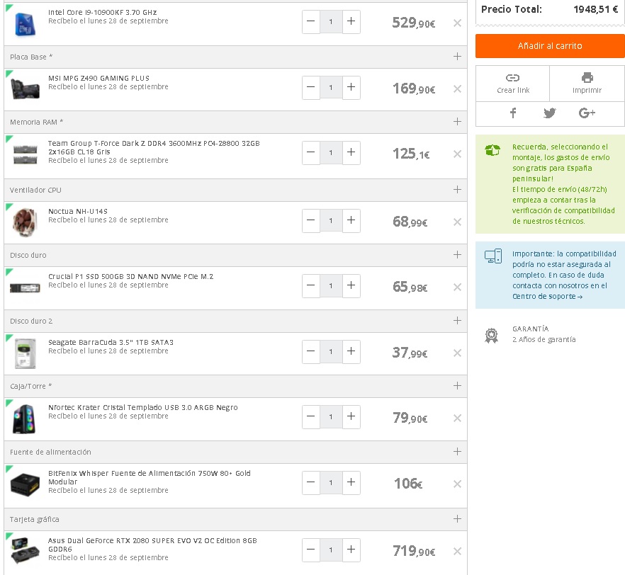 ¡Muy buenas compañer@s! Voy a hacerme un PC y quería mostraros los componentes, por tener una segunda opinión de expertos y aficionados a este mundillo
