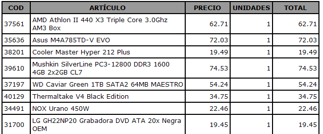 El procesador ha sido una grata sorpresa. No sabía que habían bajado tanto y veo que las RAM han vuelto a un precio asequible. La gráfica me la pillaré más tarde. Me gusta la serie 5000 pero los modelos económicos no dan mucho rendimiento para lo que valen y no corre prisa. Esperaré y quizá me pille una 58XX o una Fermi.