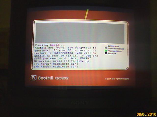 Tengo una wii de un amigo con black brick, puedo acceder al recovery con savemiifrii (version 3.4e), pero la consola ni muestra pantalla de "pulse A" ni nada...