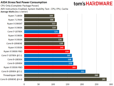Me sorprende que el 5800x se vaya a los 180W, el mio antes de todos los ajustes que le hice no consumia más de 140W en cinebench.