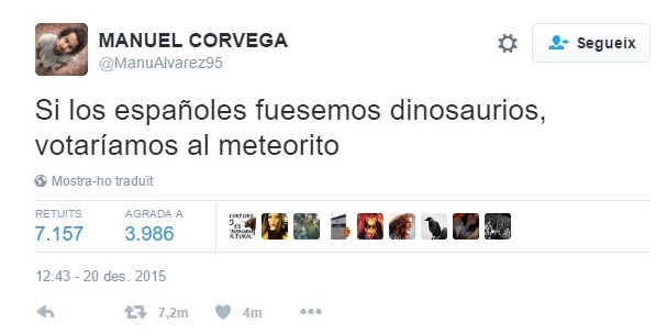 Bauer8056 escribió:El voto al PP es de rechazo a Podemos, que se refugia ahi. Hemos pasado de haber podido desalojar a Rajoy por un gobierno PSOE-Cs a fortalecer su posicion y favorecer su continuidad, alguno habra que hacer examen de conciencia.