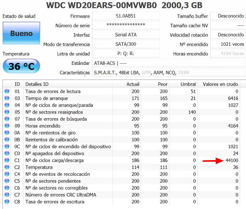 Hola. Yo tengo un Caviar Green de 1TB desde hace un par de años, que uso para guardar fotos, musica y series básicamente. Hace 3 o 4 semanas le hice lo del cambio de aparcado de 8 segundos a 5 minutos. Le he pasado el cristaldisk y me da que tiene sobre 9000 horas de uso y unos 360000 aparcados LLC. La verdad es que nunca me ha dado ningún problema. Sobre lo de los 300.000 aparcados de cabezal, según he leido y entiendo, WD te garantiza hasta 300.000 LLC, pero eso no quiere decir que vaya a cascar si sobrepasa ese número, y el compañero Craymel tiene la prueba.