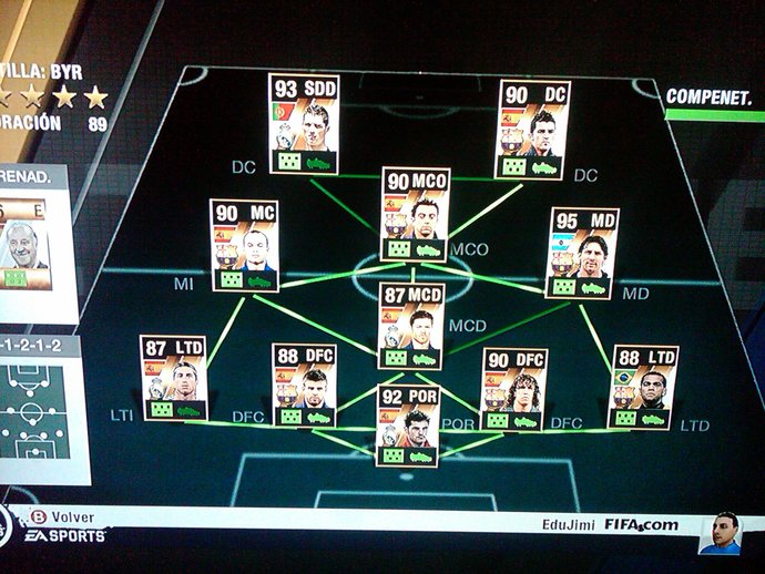 Yo uso ahora dos alineaciones y desde que las uso hace unos días solo he perido un partido en penaltis. Trato de tener las rayas verdes fosforitas en la medida de lo posible. A Juan ahora no le estoy usando. Una es: