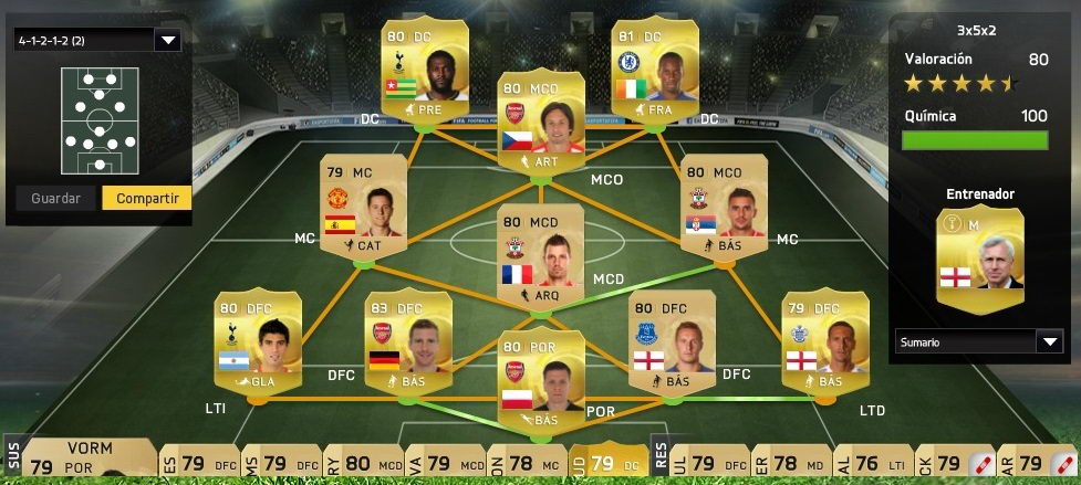 http://www.futhead.com/15/squads/2173751/En este juego con un 41212 y el juego siempre es rapido e intentas tocar deprisa y salir corriendo hacia arriba. Si embargo con el otro juego con una 4231(2) y el juego es mas lento y de toque. Y tambien depende mucho del contrario porque muchas veces eso se contagia