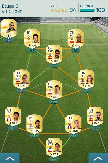 El equipo que tengo tiene 100 de quimica y es full barclays, formación 4-1-2-1-2,