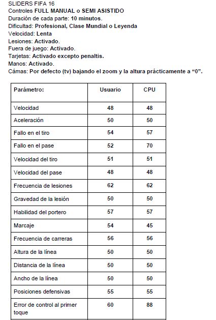 espero solucionen eso porque es para cagarse en EA !JM9 escribió:Alguien que me diga unos buenos sliders para full manual en clase mundial?? Sobre todo que limiten la capacidad de jugar como el barça de todos los equipos. Graciass!