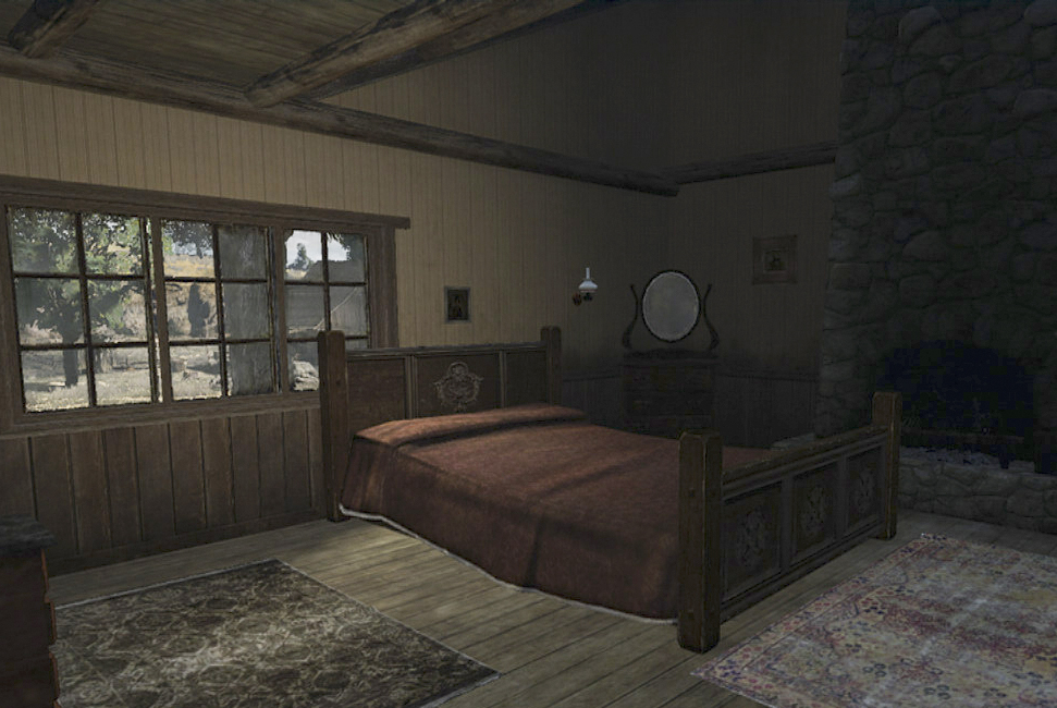 No cuela, son cuatro paredes, un suelo y un techo morados y sin apenas textura ni detalles, el espejo sin reflejo alguno... el problema no era la puerta.