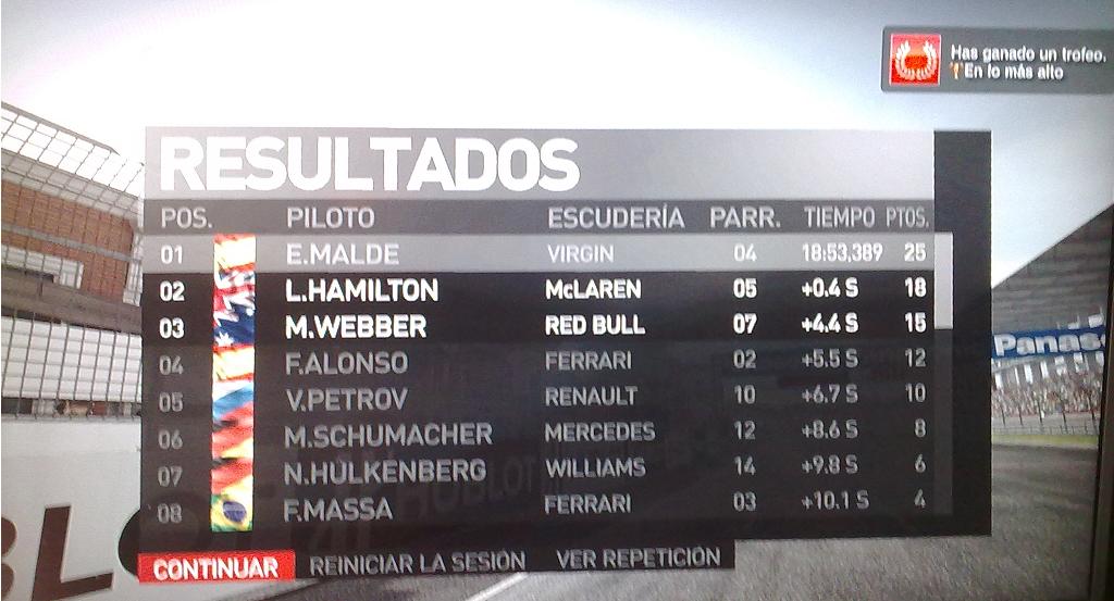 Ahora el setup del coche afecta en demasia, habia corrido la misma carrera con un setup no muy bueno y no llegue a pasar del 15ª, ajuste mi setup y me dio esos resultados.