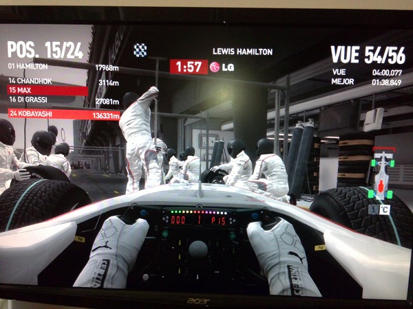 3) Estaba yo cogiéndole el truco, comenzando a hacer buenos tiempos (incluso con teclado) y había una curva de Bahrein que me salía siempre. Eso me hacía tener tiempos malísimos, entre los dos últimos. Pero bueno, saliéndome a visitar al público y todo, me validaban los tiempos... El caso es que al fin supe cuando frenar, cómo acelar y girar y en eso que piso un piano con una rueda... ¿Y qué pasa? Vuelta inválida. Vamos, no fastidies que por pisar un puto piano te penalizan, cuando es necesario sacar todo el coche fuera y curiosamente cuando lo saco no me penalizan en absoluto... ¿Esto es normal? Porque es para tirar el juego por la ventana.