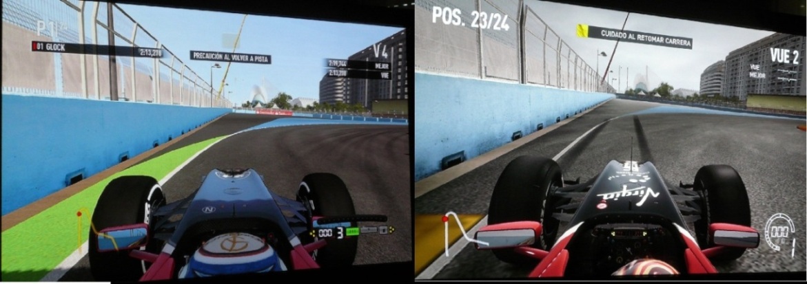 Es muy dificil mantener el coche en pista, mucho, y el kers y DRS le dan mucho jugo. al principio, el pitido del DRS me parecía un error del juego, hasta que me acordé que era por el DRS xD