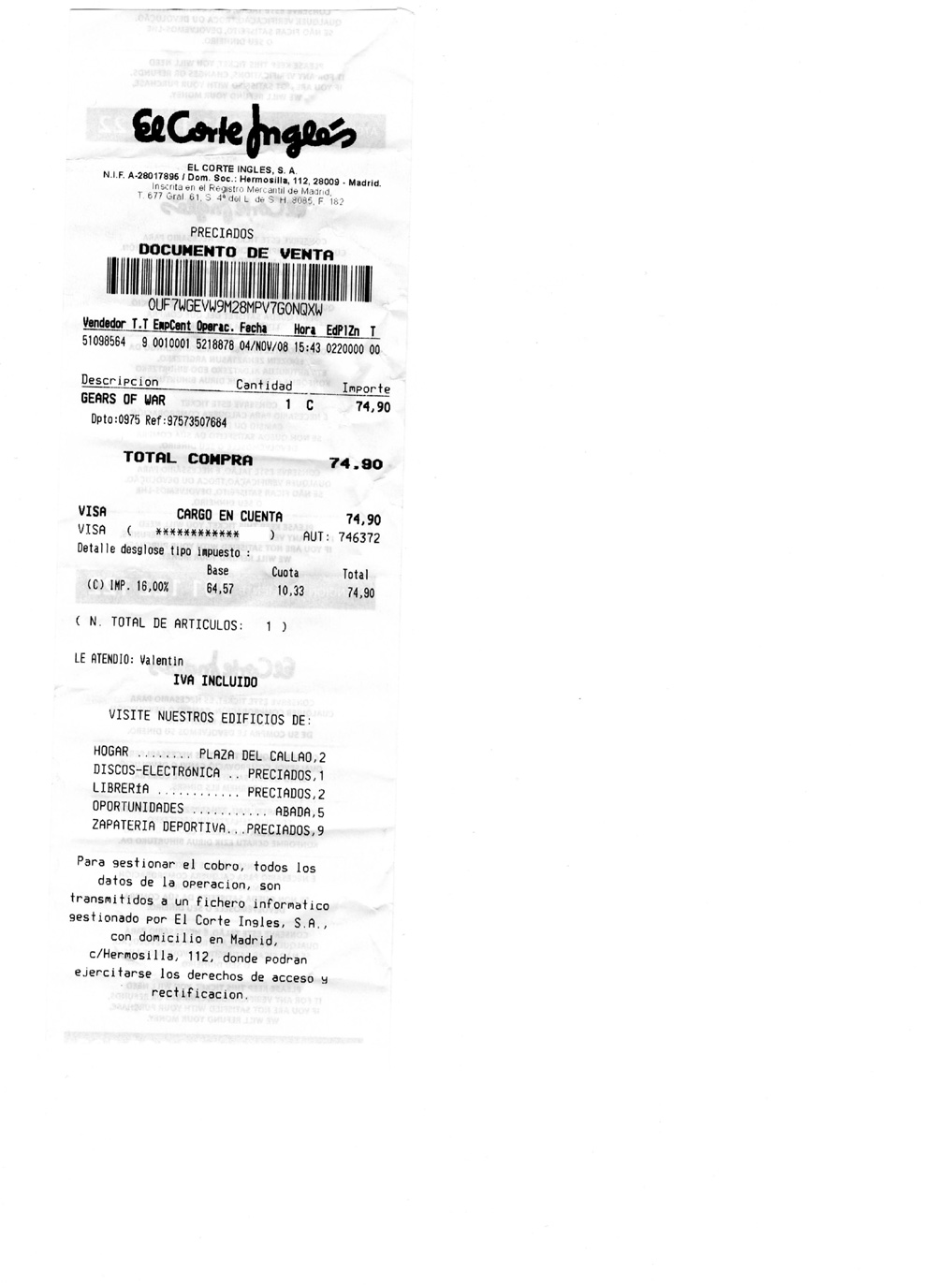 Creo que le darán al Game, ahora mismo me han dicho que hasta el 7 nada y veo que aqui en bcn hay EC de GOW2 en ECI. Yo el 6 por la mañana me piro fuera y paso de estar todo el finde sin gow. Lo siento por los 5 eurs, más se perdió en cuba.