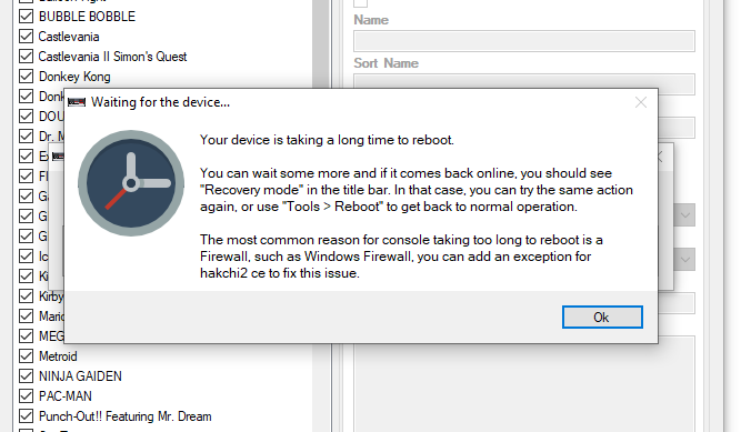 Ya después, si todo ha ido bien, le vuelves a instalar el Hakchi, aunque eso si, te recomiendo que como mucho instales la versión Hackchi CE 3.5.3, ya que la 3.6.0 da problemas, y la Hackchi 3.7.0 mayormente solo trae novedades para la mega drive mini.