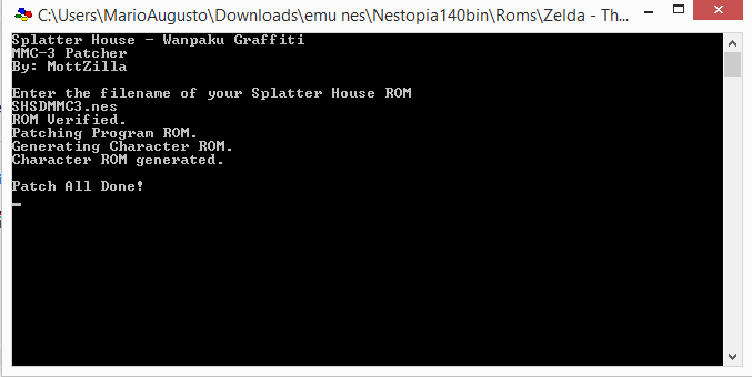 movi mi backup del Splatter al pach y se abrio la consola de comandos,pantalla negra,y hay en letras mayusculas puse "SH.NES" y pulse enter,se quito la pantalla negra y posteriormente lo meti en la mini nes,y el error c6 salio.