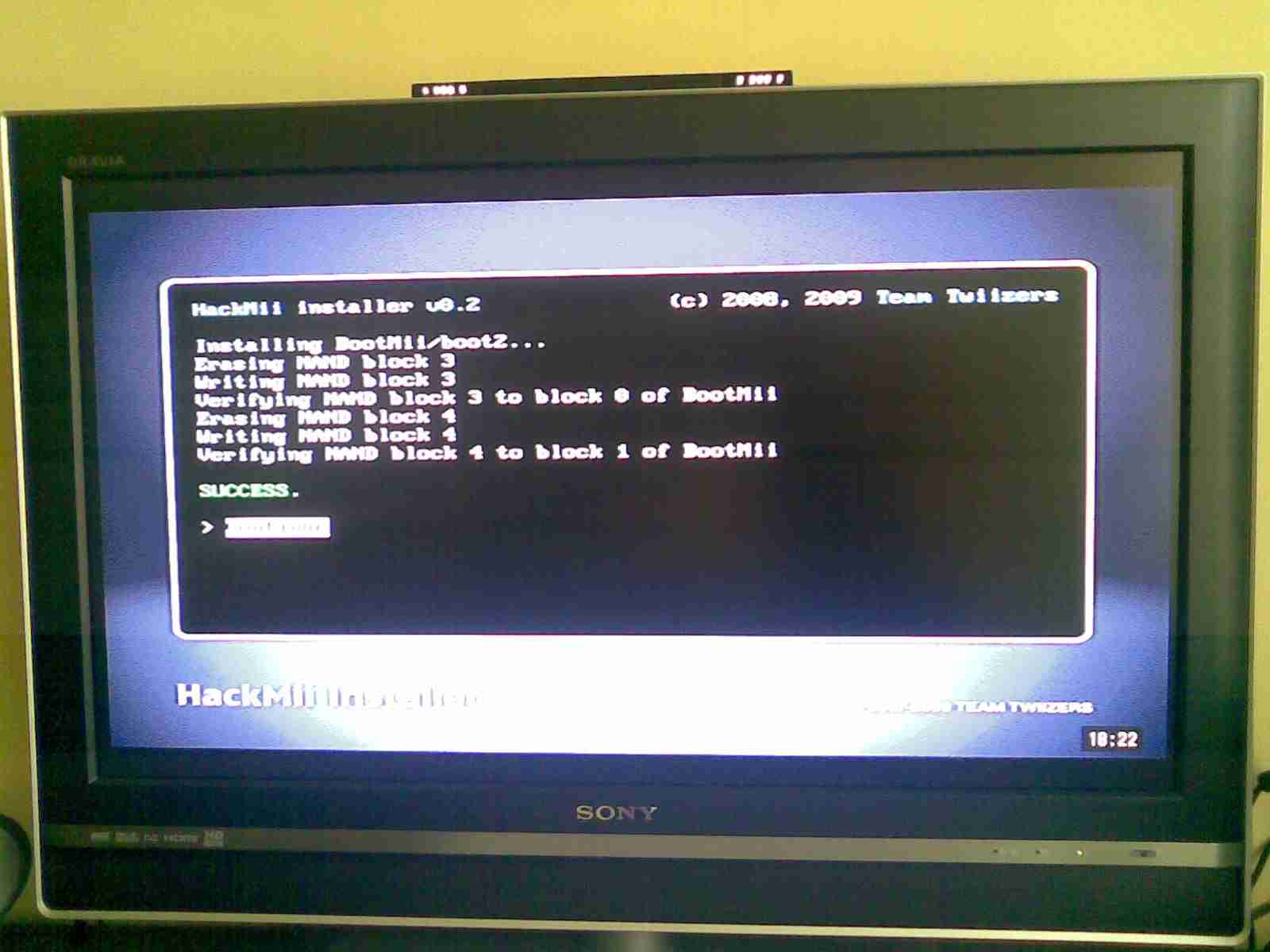 Adjunto tanto pantallazos de bootmi, como fichero log que genera bootmi. HackMii v0.2 installer starting up