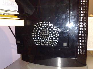 Le he hecho unos orificios a la tapa de abajo por la parte del ventilador y es que me he dado cuenta que esta consola viene muy mal refrigerada, pero no por el ventilador en si, sino porque la toma de aire es por donde esta el disco duro y el disco duro se calienta, entonces al calentarse entra aire caliente. Si bien la consola tiene respiraderos, pero los que habeis abierto la consola os vais a dar cuenta como yo que esas tomas de aire al cerrarla no entran en la parte del vantilador la unica que entra es la que se ve debajo de donde se inserta el disco duro y es ridicula a parte que el disco duro al llevar un rato encendido se calienta por tanto el aire que entra a la consola es caliente y se mezcla con el caliente que sale.