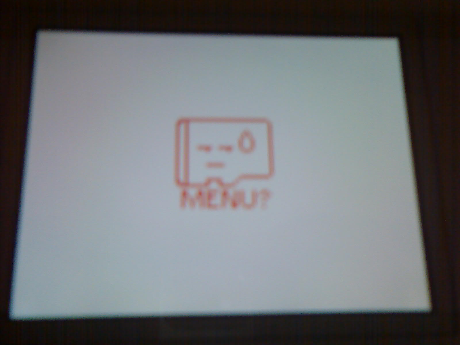 Enciendo la consola, por una milésima de segundo me sale un dibujo de una tarjeta con una cara cómica que pone LOADING y al instante la cara cambia a triste, el dibujo pasa de ser negro a rojo y debajo pone MENU? y ahí se queda. Adjunto una foto:Imagen107.jpg