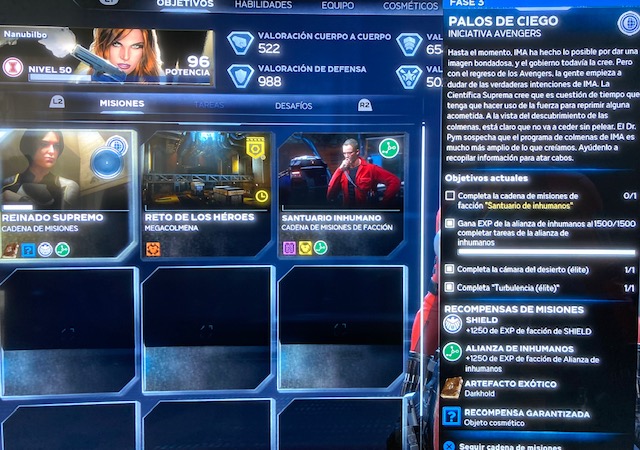 Para aquellos q sí han conseguido acabar con todo el juego, estoy encallado en la parte de Reinado Supremo, Fase 3, Palos de Ciego, y me pide hacer ‘Santuario Inhumano’. Me aparece en Objetivos esta parte, la del Santuario Inhumano, pero la misión ‘Mas que un inhumano’, que debería estar en Utah, en la mesa de Guerra, no está.