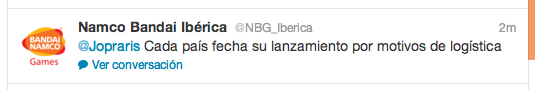 Bueno pues al final me he pillado el AKS en shopto principalmente por la camiseta, pero es que por 5 libras mas te daban el juego así que...vamos que para la semana que viene lo tendré, ese lo dejare sin abrir, en plan friki y mantendré la reserva de xtralife, que por cierto les he mandado un mail a los de namco bandai españa preguntadores por el retraso y esta ha sido su respuesta:
