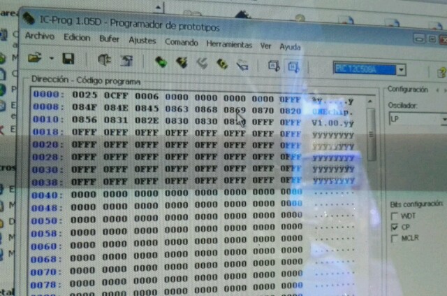 ha ver si esta el codigo entero, el icpro es un poco raro, dice que lo lee pero cuando sale 0000 en vez de 3FFF algo se ha soltado o no detecta bien el progamador,