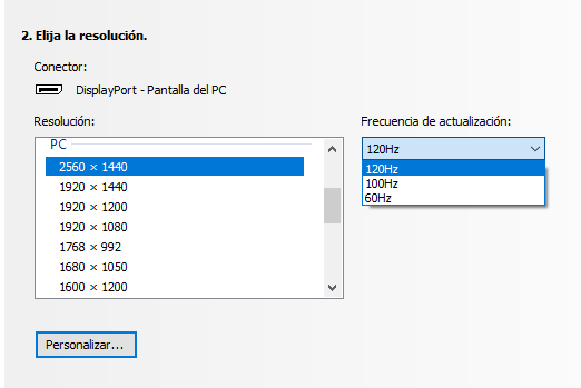 No consigo que el monitor adopte la frecuencia de 144 Hz. Se queda en los 120. Conectada por displayport.