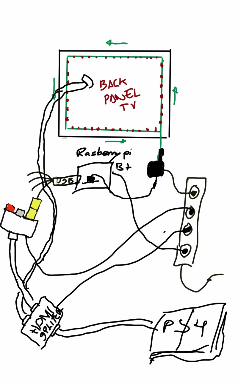 Yo todo lo tengo conectado al AVR, del AVR saldría el cable hdmi al convertidor y del convertidor a la tv con hdmi y a la raspberry con la capturadora. Hay un dibujillo que puso un compañero unos post atrás. Lo pongo de nuevo aquí: http://www.elotrolado.net/download/file.php?id=84044 En el dibujo sale por separado el hdmi splitter y el hdmi2av pero el convertidor que he comprado es 2 en 1.