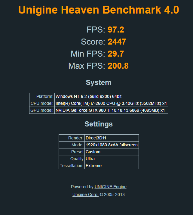 Pues despues de estar toda la tarde probando el oc de mi 1080 xtreme, los resultados con oc son bastante cortos comparando con lo que consiguen otros usuarios, a penas mejora un poco. Lo maximo que le puedo subir sin que me salgan artifacts ni me falle el controlador son; 60 en el core, y 600 en las memorias, consiguendo 2060mhz en el core, partiendo que de stock esta en 2000mhz. Bueno pues subiendo solo el core no hay ninguna mejora, consigo la misma puntuacion en el heaven. Y con +60 en core y 500 en memorias, la mejora sigue sin aparecer, no lo entiendo pero sigo con la misma puntuacion. Es ya a partir de ahi que subiendo a 600 las memorias ya la mejora es de 4fps, pasando de 114,5 a 118,4, poco comparado con la gente que consigue mas de 120fps.