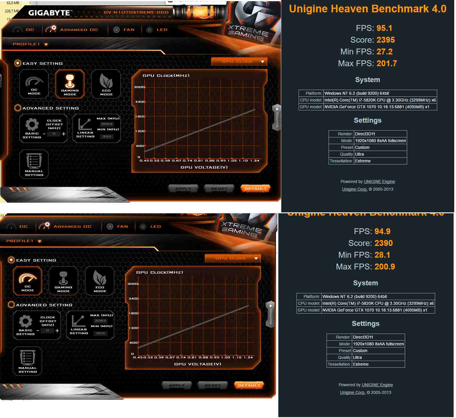 EuZeN escribió:dodert escribió:@BlingBling puedes publicar tus benchmarks? tenia entendido que la gigabyte 1070 Xtreme gaming era de las mas potentes 1070 si no la que mas.