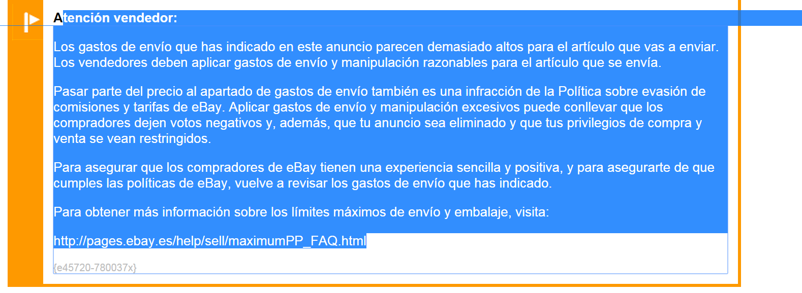 Hola te saldra esta imagen de advertencia cuando te pases de gastos de envio. y sino mira aqui esta toda la informacion de tarifas por si alguien le interesa: .http://pages.ebay.es/help/sell/maximumPP_FAQ.htmlkekonline escribió:no jodas, pero ¿que límite hay? ¿donde puedo verlo?