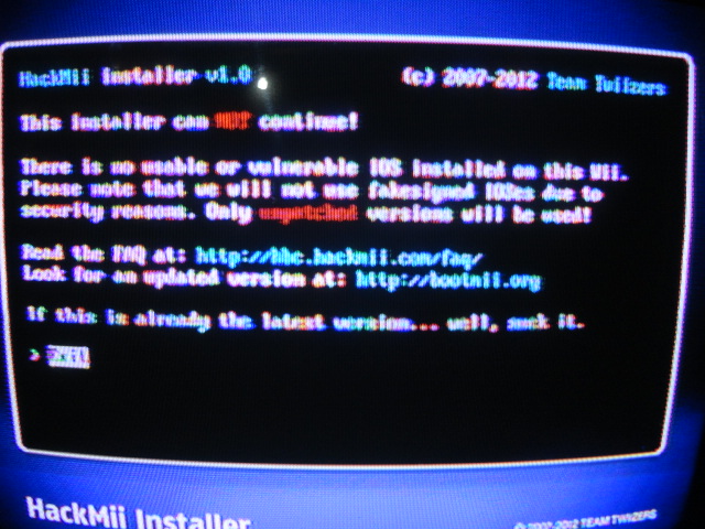 3.Ahora instala otra ves el instalador del HBC, ejecutalo e instala Botmii tanto en boot2 como en IOS, e instala el HBC.