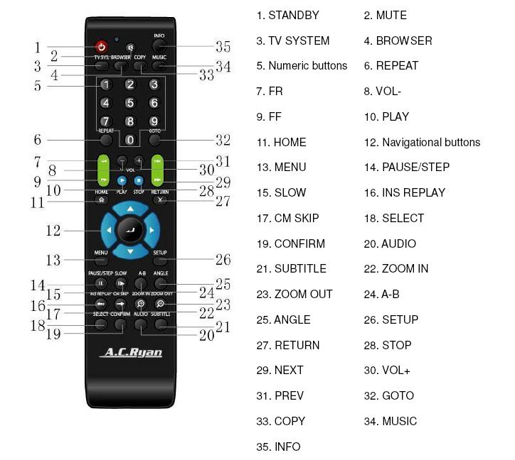en los botones chapter + y - he puesto confirm y browser respectivamente del mando playon, todo funciona menos el encendido, un saludo y si quereis sugerir algo ya sabeis.......