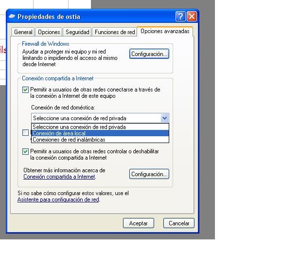 5 - La única forma que he encontrado de que haya Internet es creando un Puente de Red y queda así: