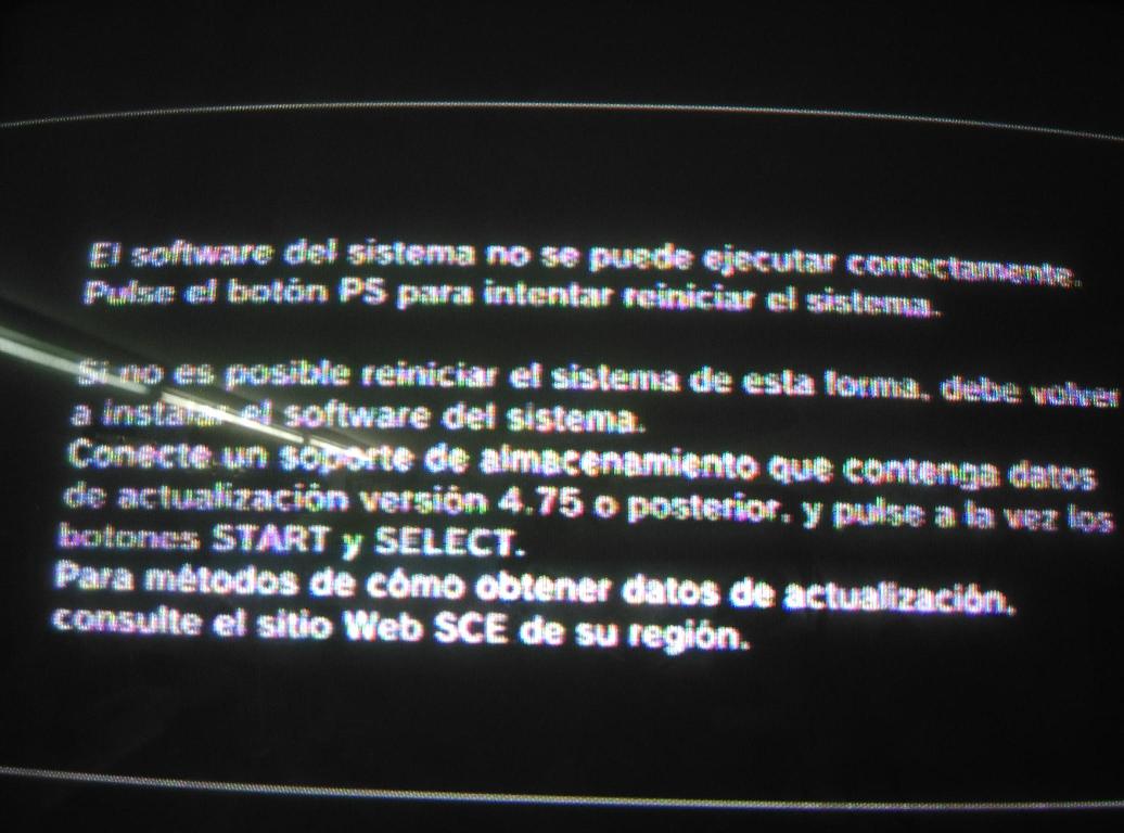 El software del sistema no se puede ejecutar correctamente. Pulsa el boton PS para reiniciar, el sistema.