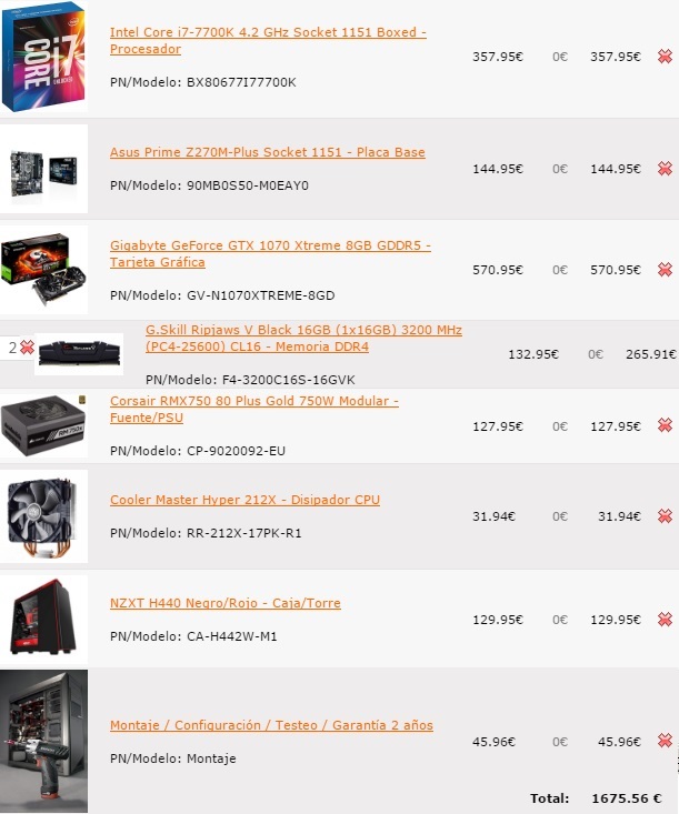 Oscarvha escribió:Gracias por la recomendación! Al final ha caido lo he pillado ésta mañana prácticamente tus recomendaciones @Coolmod Gaming , salvo alguna cosilla como grabadora que no me hace falta,, el pedido es el número 97747-00003 .