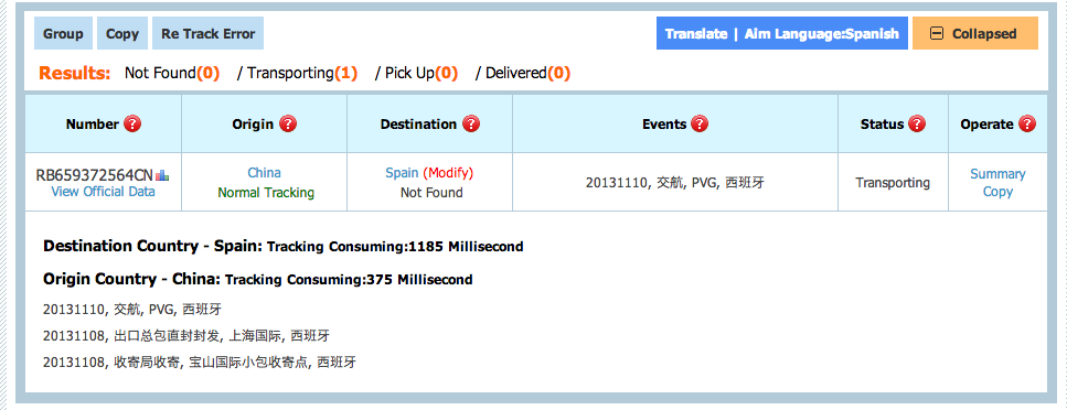 Acabo de mirar el tracking aqui http://intmail.183.com.cn/icc-itemtraceen.jsp y me sale esta informacion:
