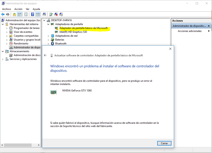 Tampoco es posible instalar solo el paquete descargado con los drivers de la pagina de Nvidia, ni tampoco con la aplicación Nvidia experience que detecta y descarga automaticamente los driver.