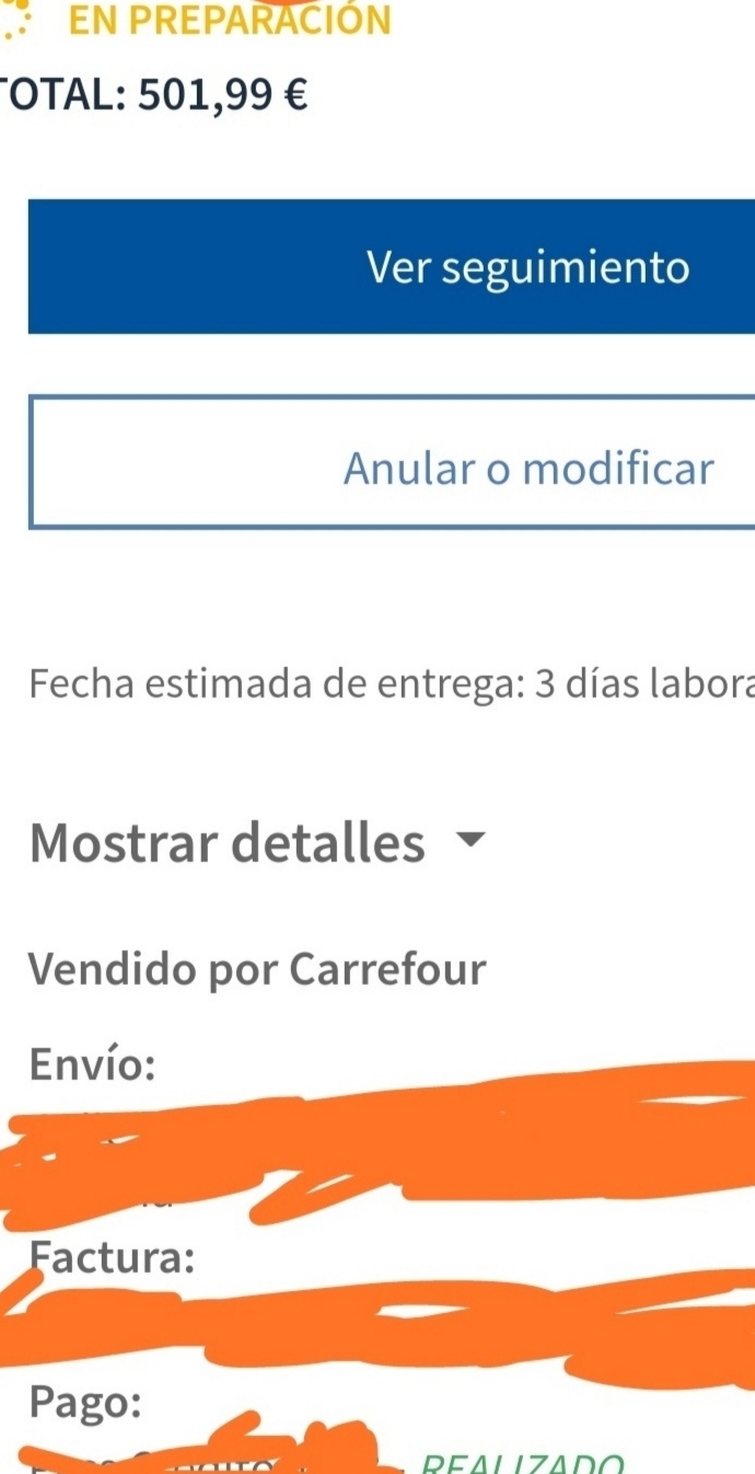 Todo lo que pase en el estado del pedido carrefour dice que es normal, si no aparece el pedido es normal, si aparece cancelado no pasa nada es normal, si cobran mes y medio antes es normal, si lo devuelven es normal, que te manden un mail diciendo que no hay consolas es normal.