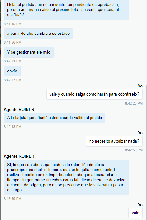 Por mi parte, lo dejo aqui en este hilo. Si me entero de que se actualiza el pedido y no lo ha dicho nadie, lo comunico. Si veo que está como el que dé la primera noticia, no digo nada más.