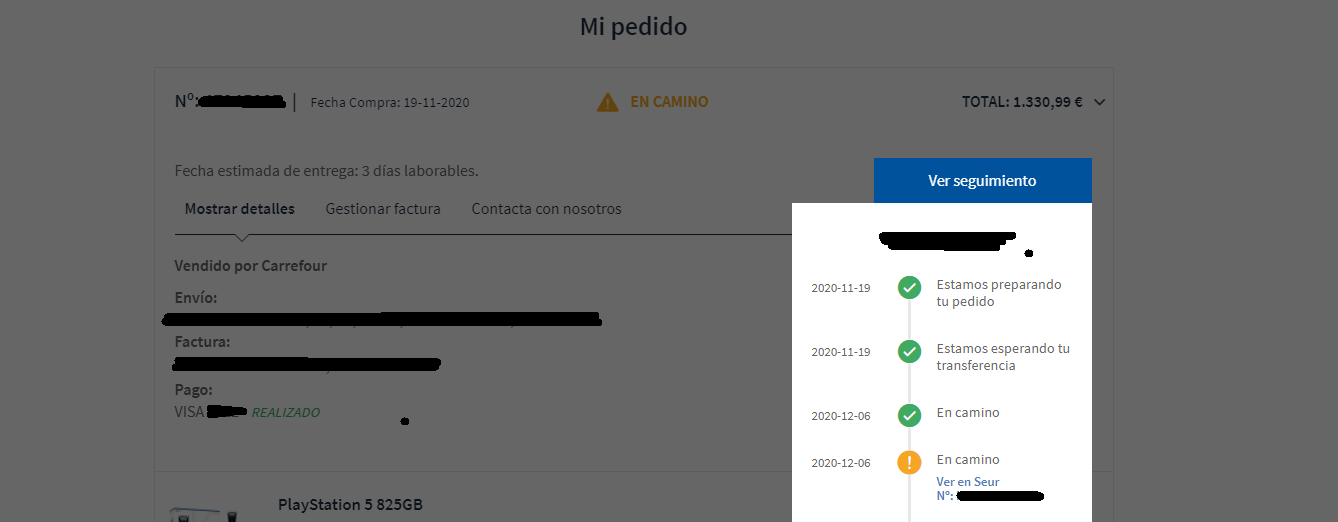 Ahora parece ser, por lo que leo, que "maldito Carrefour que no ha caído que esta semana es puente". Las teníamos que recibir del 15 al 20. Las tendremos antes. Olvidaros de lo demás. Para mi es más importante leer a los que recibieron ese correo maldito o no les ha cambiado el estado. Porque probablemente se conecten aqui para ver si alguien más está en su situación y/o se ha actualizado la misma.
